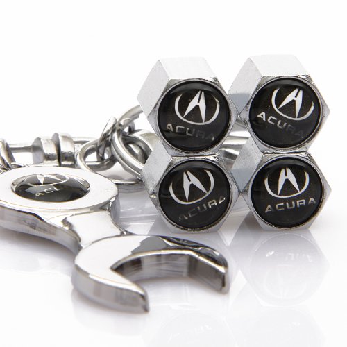 4Pcs Chrome Wheel Tire valve stems & Caps with Wrench Key Chain (For ACURA)